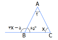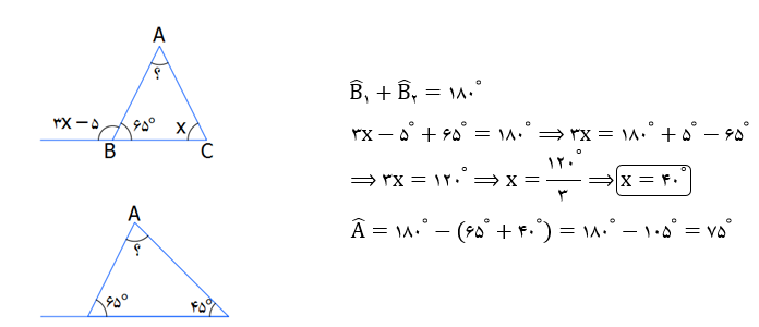 در شکل زیر اندازه‌ی زاویه‌ی A  برابر است با:
