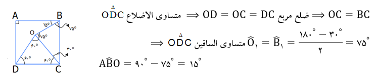 در شکل زیر، ABCD  مربع و مثلث ODC  متساوی الاضلاع است.   چند درجه است؟