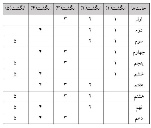با انگشتان یک دست به چند حالت میتوان عدد3 را نشان داد؟ (راهنمایی: از یک جدول نظام‌دار استفاده کنید.)