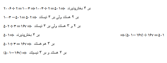 اعدادی که بر 2 و 3 بخشپذیرند بر 4 نیستند یا اعدادی که فقط بر 4 و2 بخشپذیرند بر 3 نیستند.