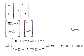 قرینه ی نقطه ی  نسبت به مبدأ مختصات به صورت  می باشد، مقدار  کدام است؟