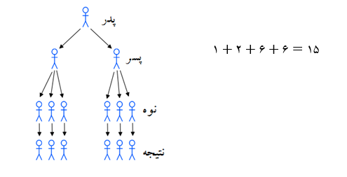 پدری فقط دو فرزند پسر، هر پسر فقط سه فرزند دارد که همه پسر هستند و هر نوه فقط یک فرزند پسر دارد. تعداد آقایاناین خانواده چند نفر است؟