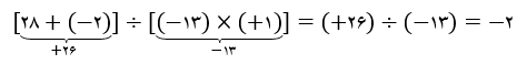 ابتدا حاصل کروشه را به دست می‌آوریم، سپس جواب کروشه‌ی اول را بر جواب کروشه‌ی دوم تقسیم می‌کنیم.