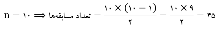پس تعداد مسابقه‌ها نصف حاصل ضرب تعداد تیم‌ها در یکی کمتر است.