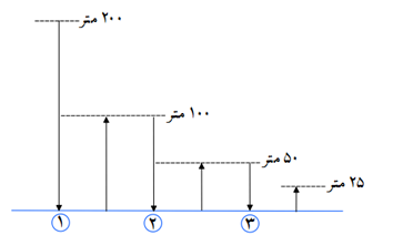 توپی از ارتفاع 200 متری رها می‌شود.‌این توپ هر بار پس از برخورد با زمین، نصف ارتفاع قبلی خود بالا می‌رود. پس از سومین برخورد وقتی توپ بالا می‌آید. ارتفاع آن چند متر خواهد بود؟