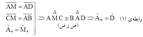 از طرفی   زاویه‌ی خارجی است. پس می‌توان نوشت: