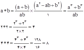 در مجموعه ی اعداد حقیقی مثبت، عمل  را چنین تعریف می کنیم:     در این صورت حاصل  کدام است؟