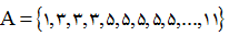 اعضای مجموعه اعداد 1،3،5،7،9،11 می باشند که هر کدام به تعداد خودشان تکرار شده اند. بنابراین این مجموعه 6 عضو دارد.