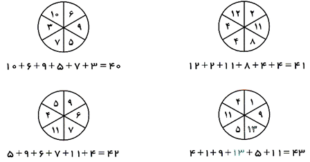 حل: هر بار به مجموع اعداد داخل دایره ها یکی اضافه شده است: