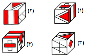 حل: به جز گزینه ی (1) سایر گزینه ها قابل قبول نیست. وجه بالایی گزینه ی (1)، وجه سمت چپ شکل سمت چپ را نمایش می دهد.