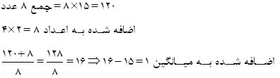 روش دوم: جمع مقادیر اضافه شده 8 واحد است تعداد هم 8 تاست، پس به میانگین 1 واحد اضافه می شود .