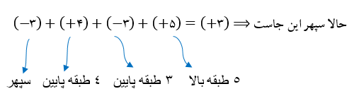ساختمانی از 10 طبقه روی همکف و 4 طبقه زیر همکف تشکیل شده است. سپهر در طبقه‌ی 3- است. او ابتدا 4 طبقه بالا می‌رود. سپس 3 طبقه پایین می‌آید و از آن‌جا 5 طبقه بالا می‌رود. او هم اکنون در کدام طبقه است؟
