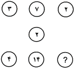در شکل زیر، به جای علامت سؤال، کدام عدد را باید قرار داد؟