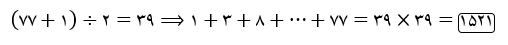 بنابراین آخرین عدد دنباله را باید با عدد 1 جمع و بر 2 تقسیم کنیم. حالا اگر جواب به دست آمده را در خودش ضرب کنیم، حاصل جمع دنباله به دست میآید.