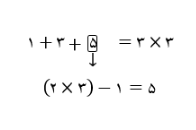 به عبارت دیگر عدد 5 از دو برابر عدد 3 یکی کمتر است.