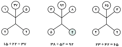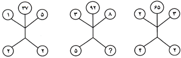 در هر یک از اشکال زیر، به جای علامت سؤال، کدام عدد را باید قرار داد؟