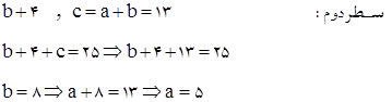 بازی هرم چین چنین انجام می شود. عدد هر خانه برابر است با مجموع دو خانه ی زیر آن. مثلاً در شکل زیر  . اگر مجموع اعداد سطر سوم برابر 17 باشد، مقدار a برابر است با: