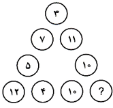 در شکل زیر، به جای علامت سؤال، کدام عدد را باید قرار داد؟