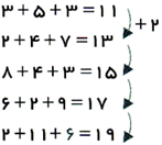 حل: به مجموع اعداد ردیف ها 2 تا 2 تا اضافه می شود: