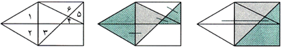 حل: در شکل ۶ مثلث یک قسمتی، ۶ مثلث دو قسمتی، ۳ مثلث سه قسمتی و در مجموع ۱۵ مثلث وجود دارد.