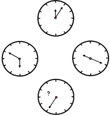 محل قرار گرفتن عقربه ساعت در شکلی که با علامت سؤال مشخص شده کدام است؟
