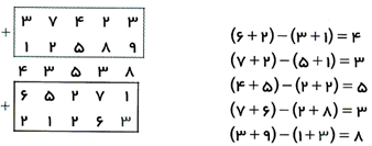 حل: اعداد ردیف وسط، اختلاف مجموع دو ردیف بالایی و دو ردیف پایینی است: